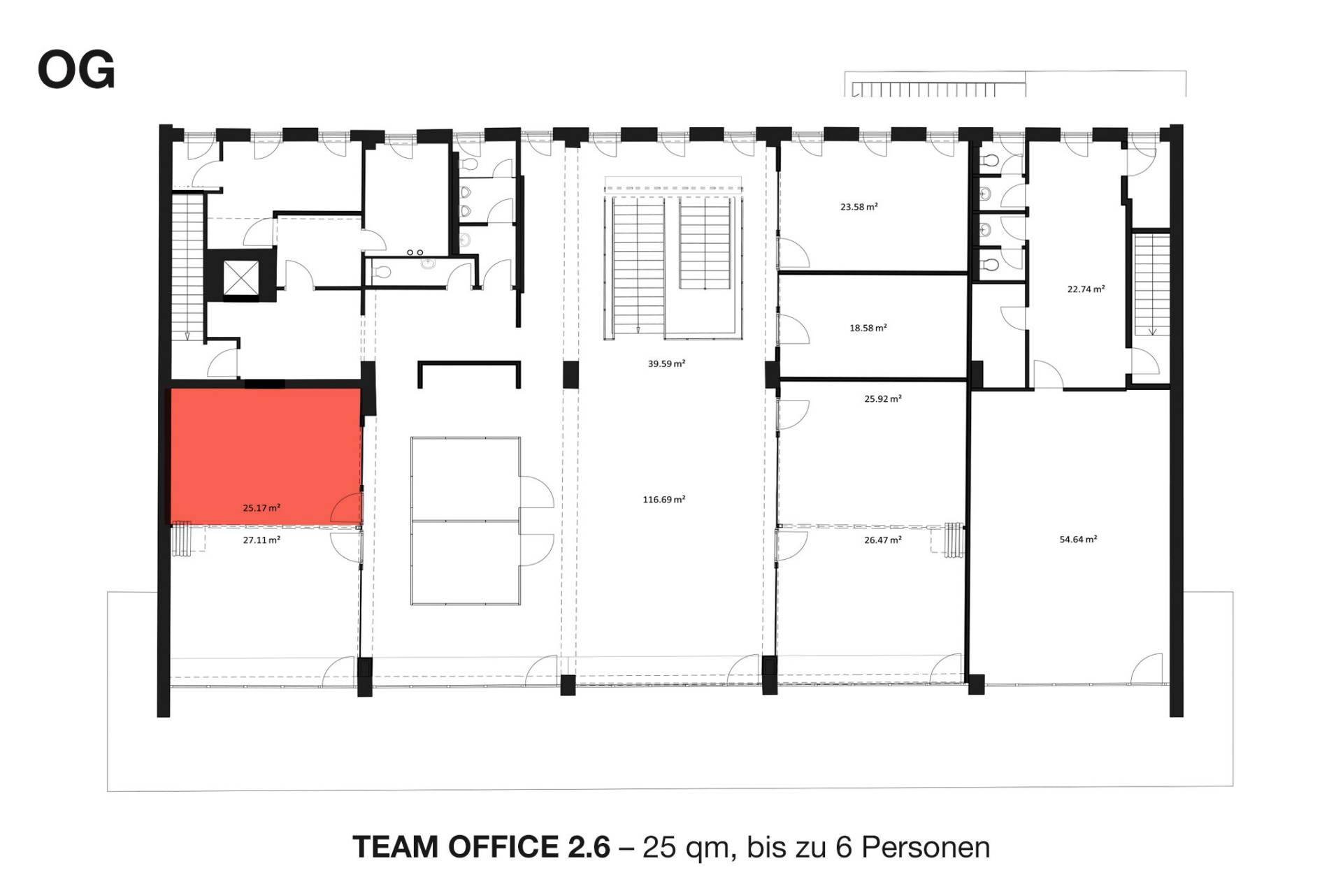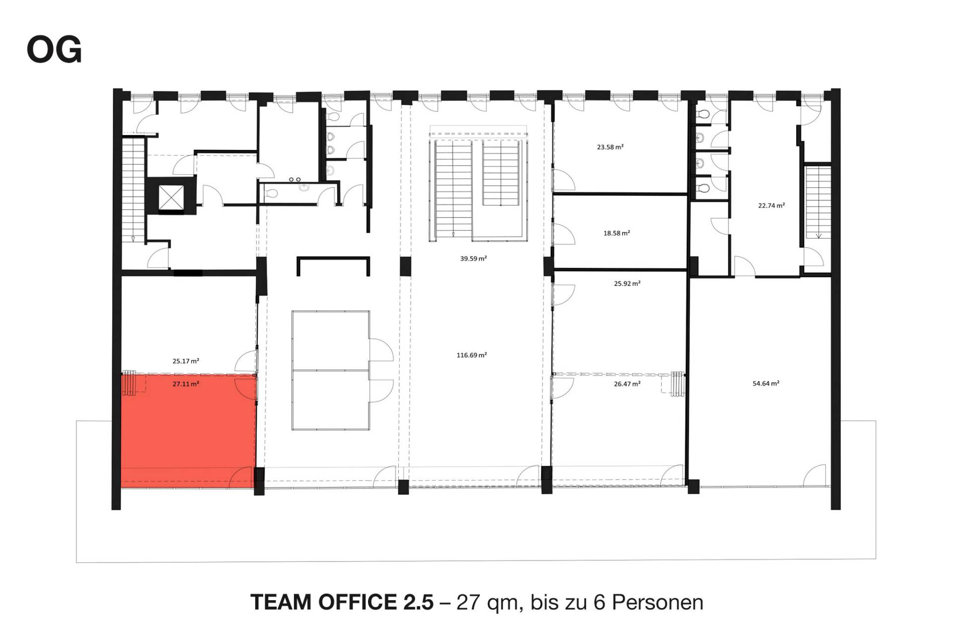 Team Office 2.5 – 27 bis 52 qm, bis zu 6 oder bei Erweiterung 12 Personen