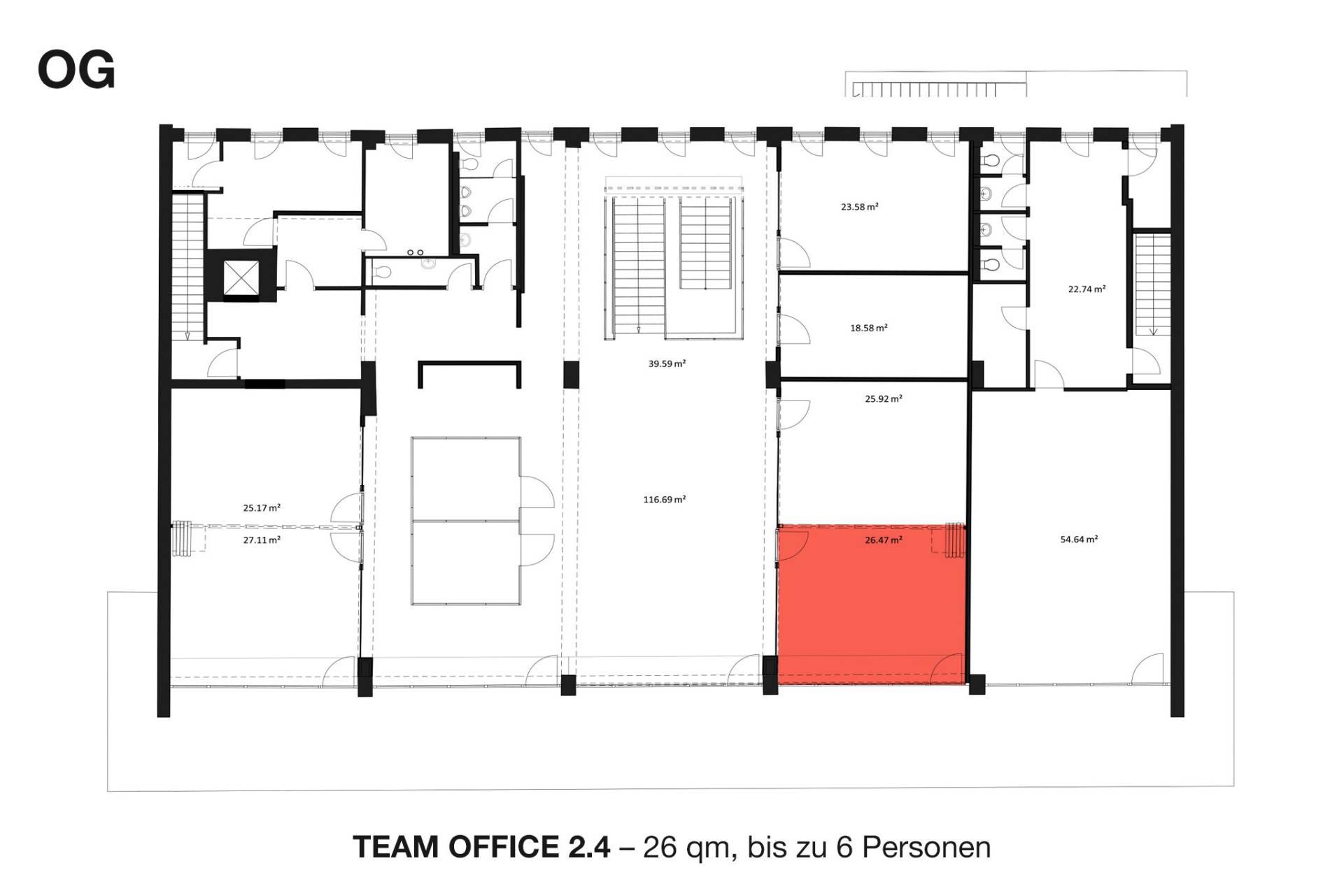 Team Office 2.4 – 26 bis 52 qm, bis zu 6 oder bei Erweiterung 12 Personen