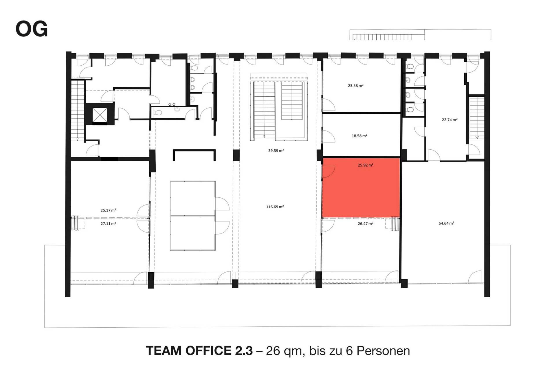 Team Office 2.3 – 26 bis 52 qm, bis zu 6 oder bei Erweiterung 12 Personen